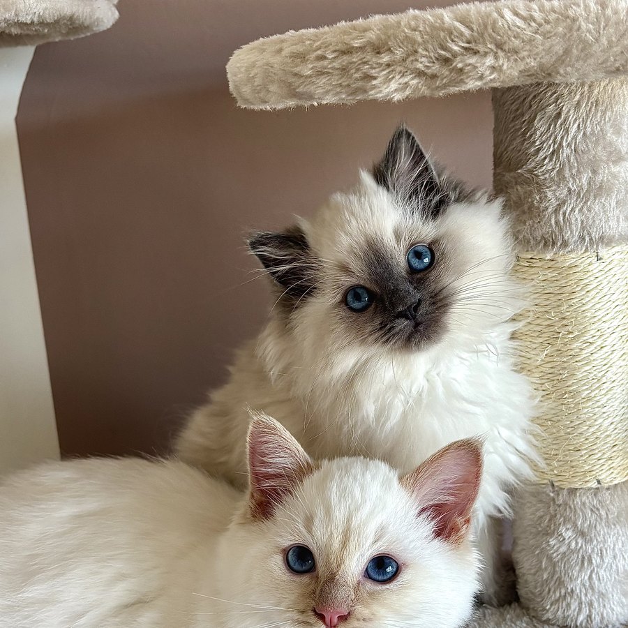 Two ragdoll kittens making mischief in the UK.
